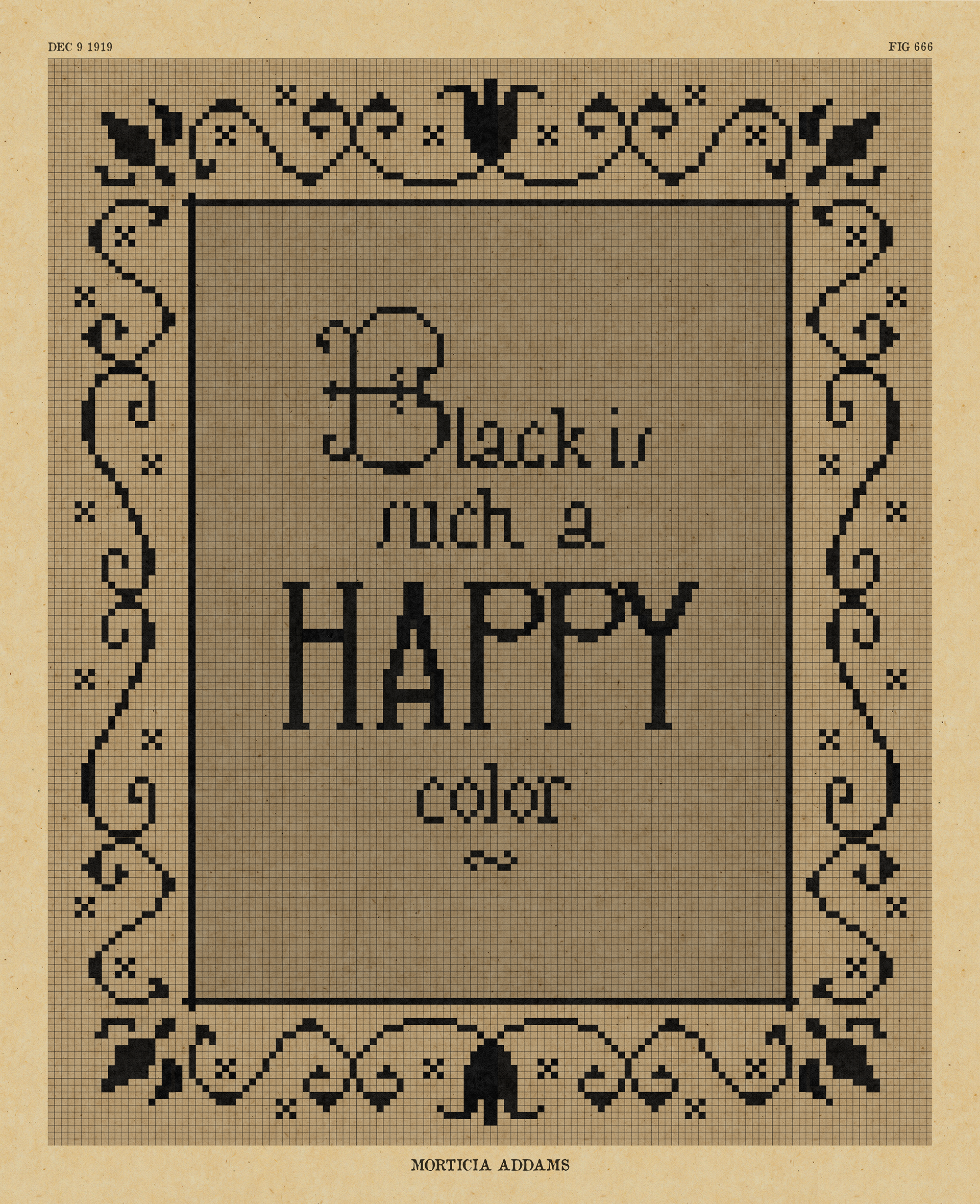 Morticia Addams' Cross Stitch Pattern Style